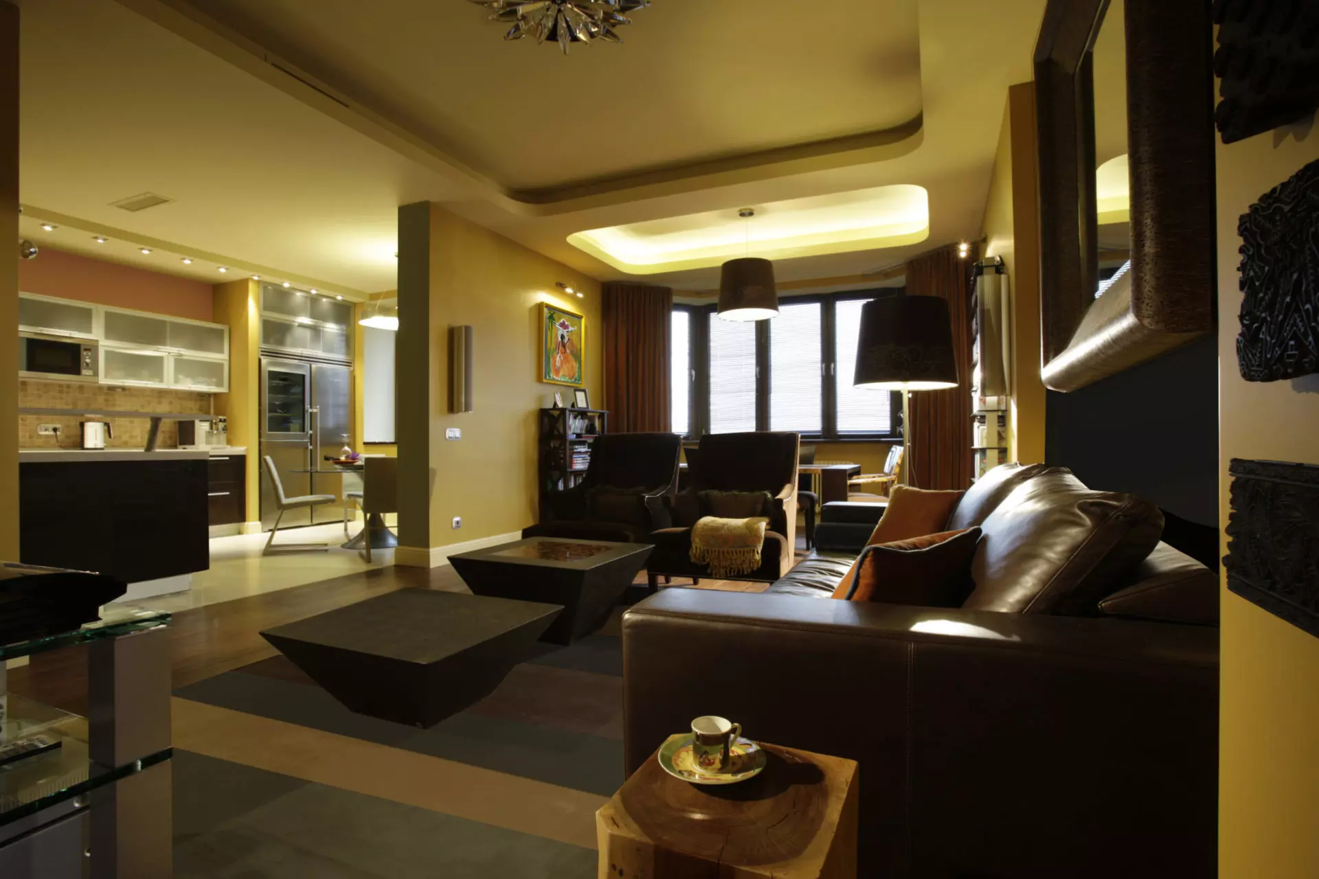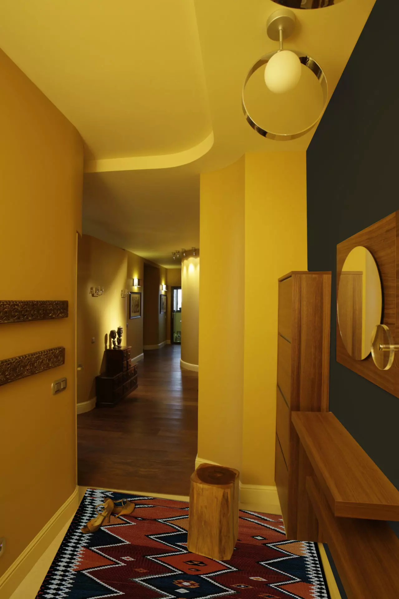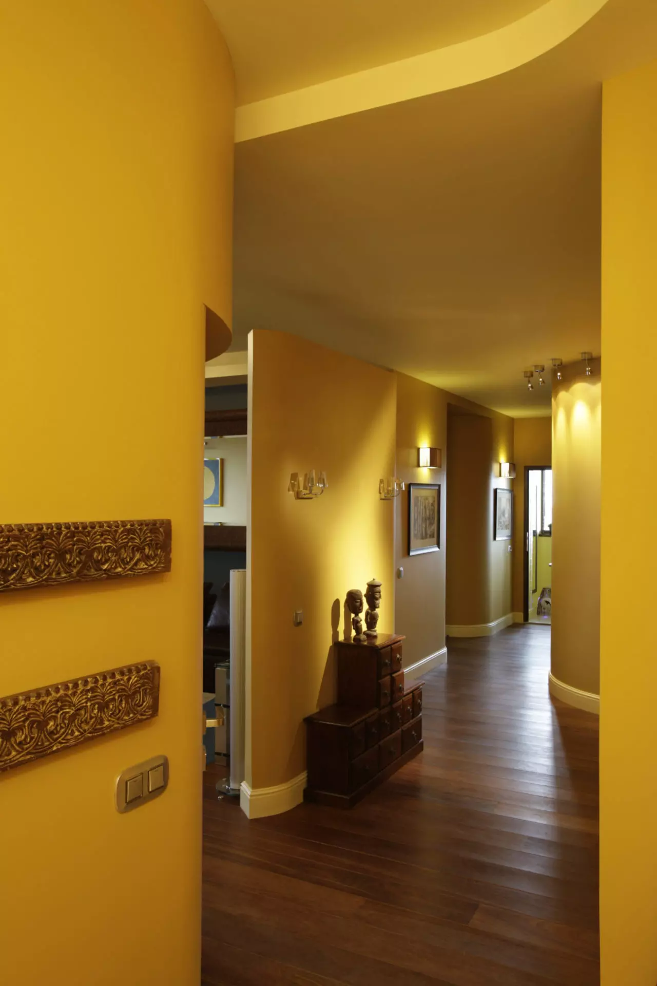 Грамотная планировка, солнечная цветовая гамма, экзотическая мебель с острова Бали, старинные деревянные оттиски для печати рисунка на ткани из Индии.