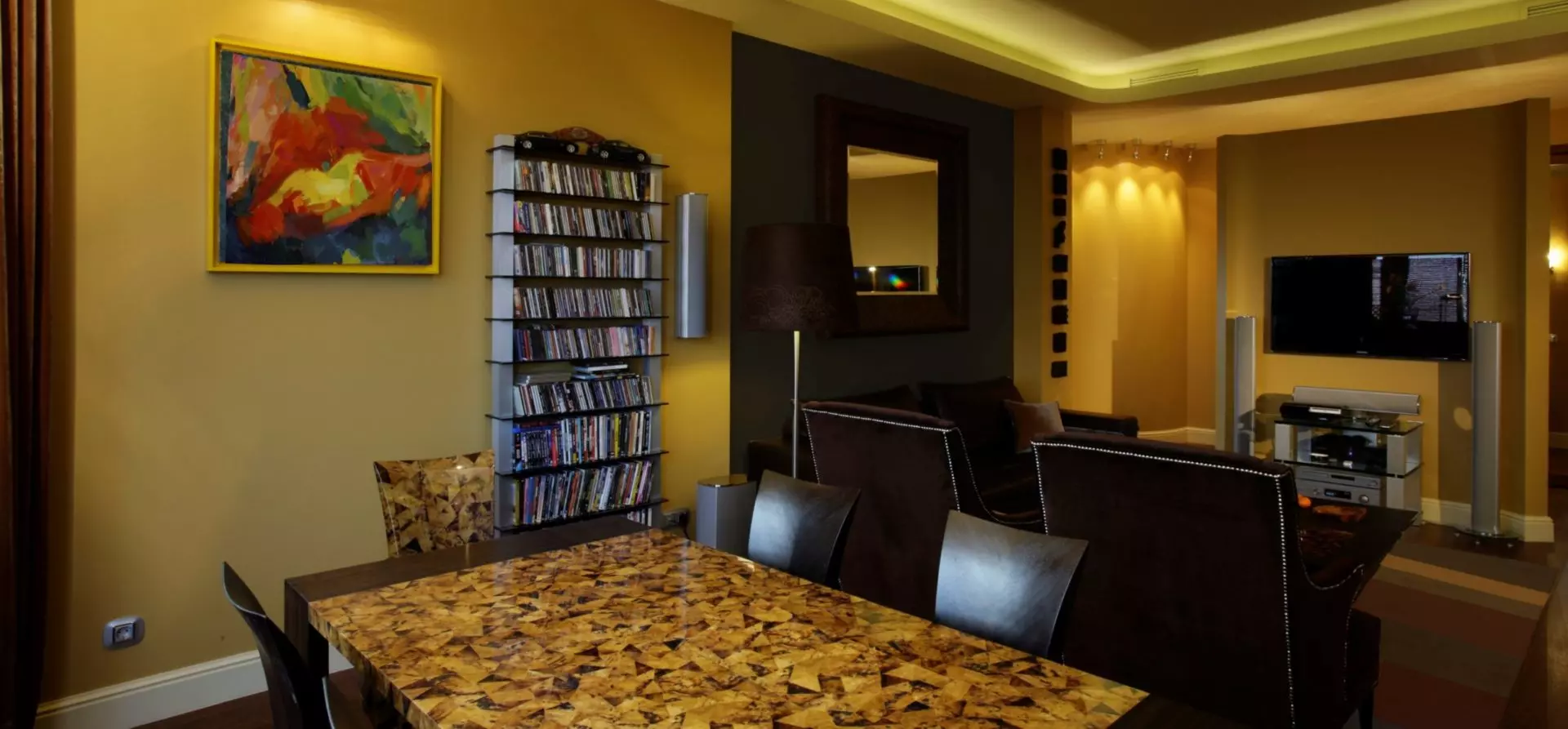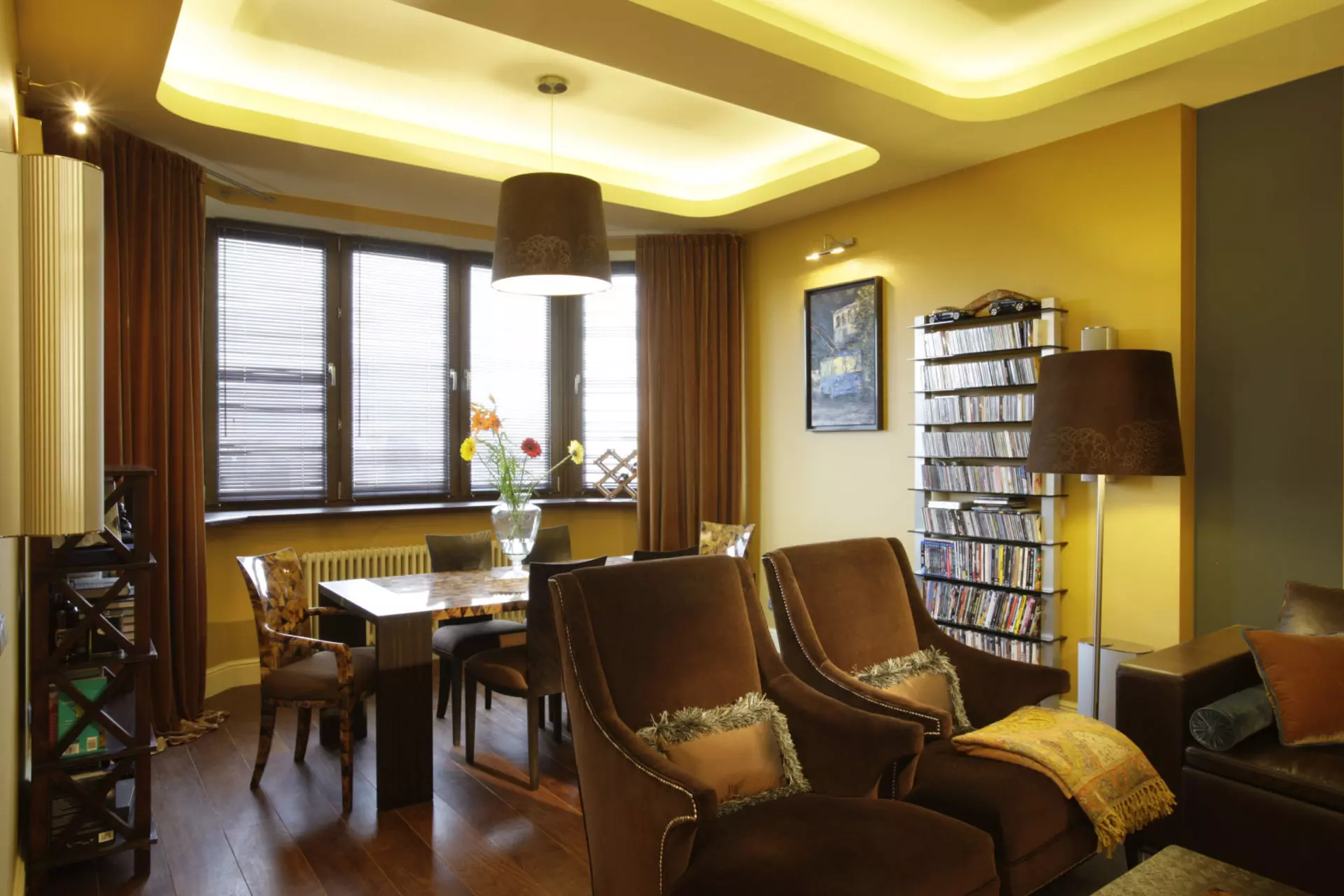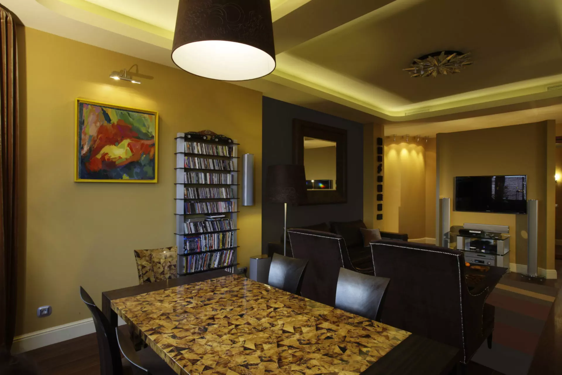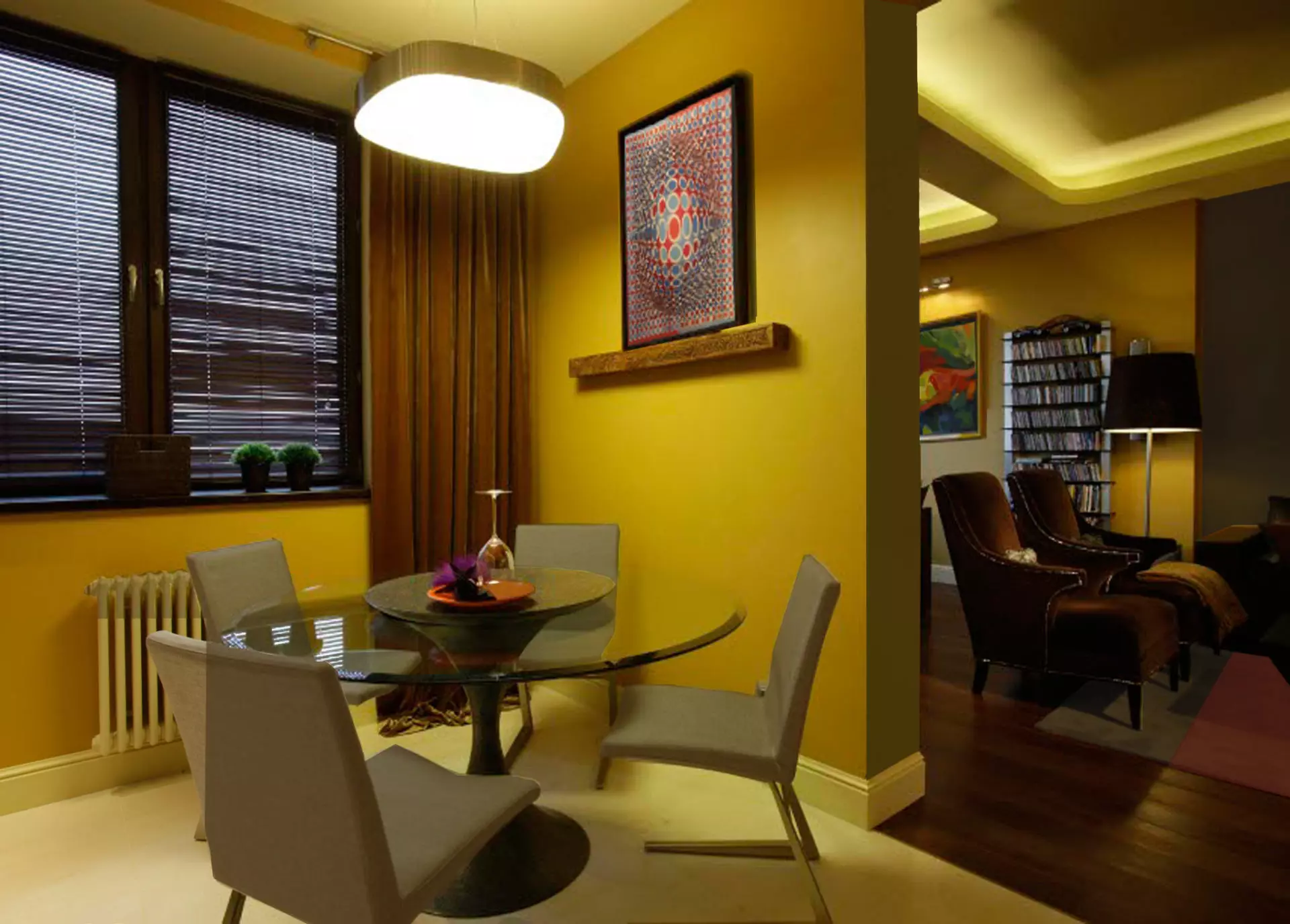 Грамотная планировка, солнечная цветовая гамма, экзотическая мебель с острова Бали, старинные деревянные оттиски для печати рисунка на ткани из Индии.