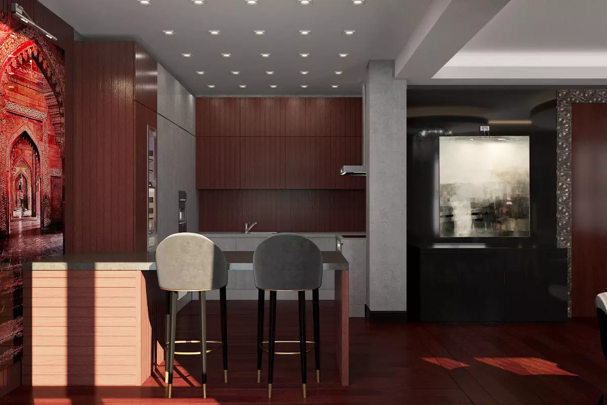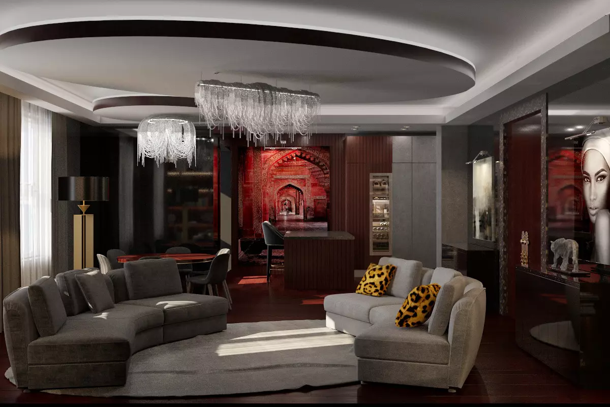 Интерьер получился современным прочтением сказки «1000 и одна ночь». Каждое помещение —занимательное путешествие, которое удивляет и впечатляет.